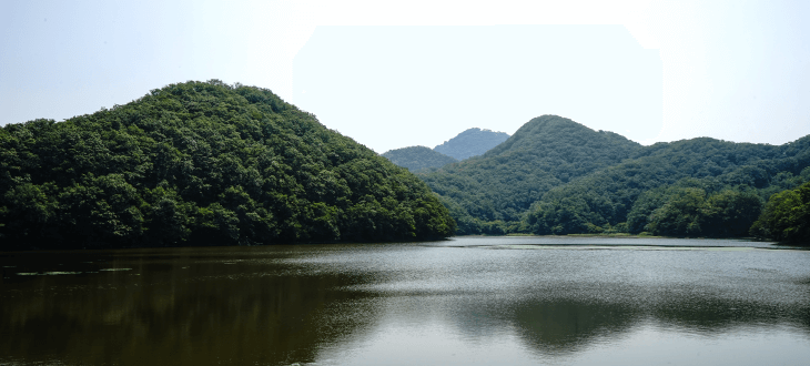 美術館南側一面のガラス壁の向こうには江戸時代から明治にかけて整備された八幡池という池が広がる。カフェラウンジからのその眺めは、正面奥に、あの秀吉と吉川経家の名城戦の舞台となった鳥取城のある「久松山」。池の中央の小高い山を挟んだ左側に、久松山と鳥取を一望出来る山頂に秀吉が陣を置いた「太閤ヶ平」があったとされる「本陣山」。鳥取城を降伏に追い込んだ兵糧攻めはここで指揮されました。連なる山々はその生きた証。まさしく戦国絵巻そのものです。戦の舞台を凝集した自然の屏風絵にたたずめば、あなたも絵巻の登場人物となれることでしょう。喫茶しながら自然の壮大な歴史絵巻を鑑賞できる、ここは類いまれなスポットと言えるでしょう。