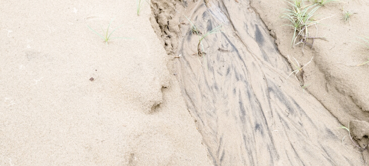 鳥取砂丘で見られる砂鉄(黒い部分)