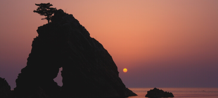 国定公園の名勝であり、天然記念物にも指定される、浦富海岸は、山陰海岸ジオパークの中でも「山陰の松島」と呼ばれるだけあって、その情景はふすま絵、屏風画にありそうな風光明媚で和の情緒が漂う。「日本百景」にも選ばた日本海沿岸独特の自然景勝地です。